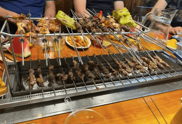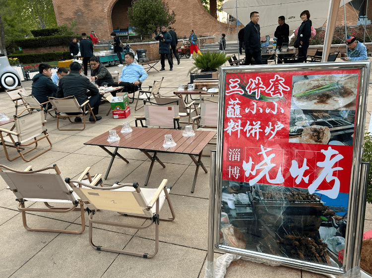 这里,有舌尖上的黄河——来自淄博的烤串在烤炉上滋滋作响。沿黄九省(区)500余种特色农产品在这里现场售卖。