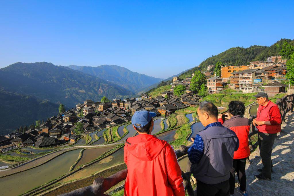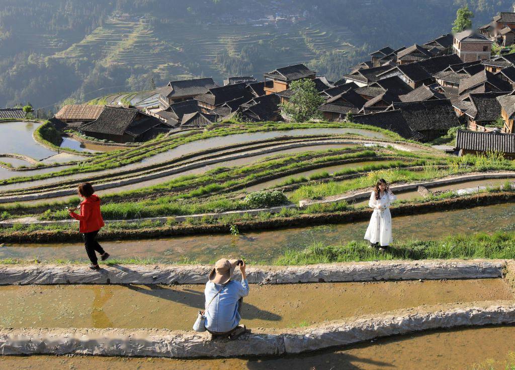 加榜梯田春意盎然,风景如画。众多游客慕名前来游览拍照。图/视觉中国