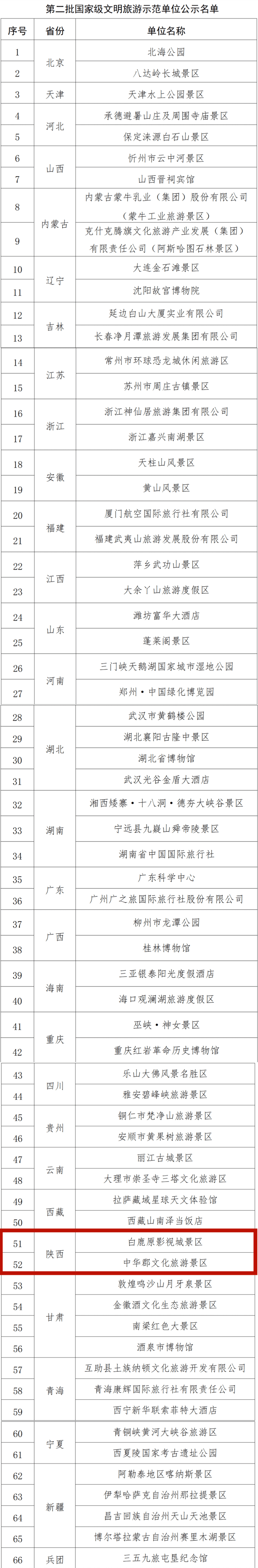 陕西省两处景区榜上有名