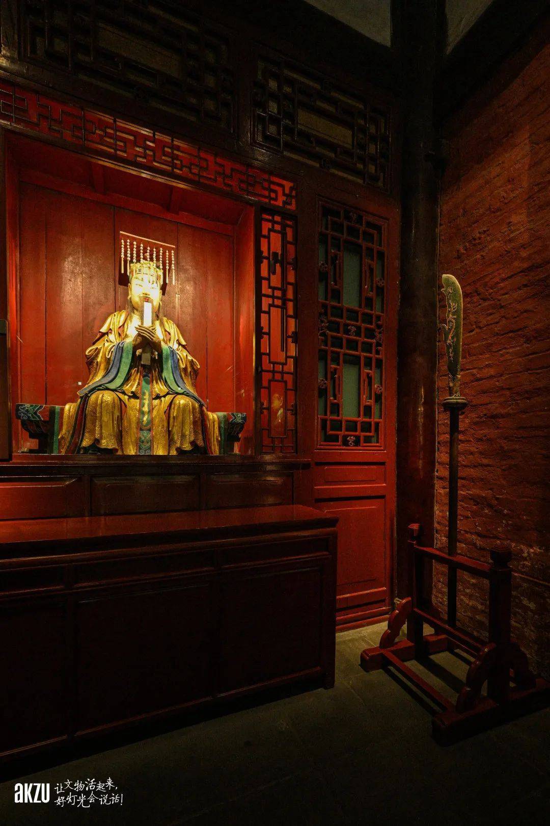 刘备殿大殿正中座刘备塑像,塑像前牌位上写着刘备的谥号“汉昭烈皇帝”,充分体现君尊臣卑的等级观念。正殿两侧紧邻东、西偏殿,东偏殿为关羽塑像和其子关平、关兴及其部将赵累、周仓的陪祀塑像;西偏殿则是张飞及其子张苞、孙张遵的塑像。从这三组塑像的空间布局,主次位置的安排,都体现了古典小说《三国演义》中刘、关、张以忠义相投,肝胆相照的君臣关系。