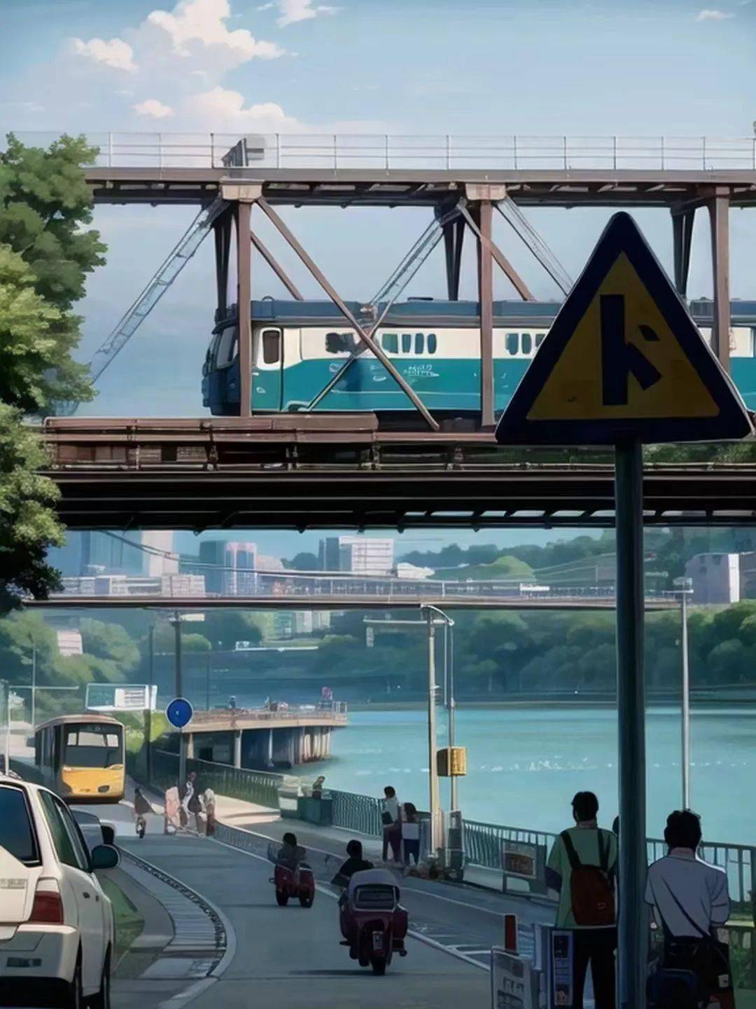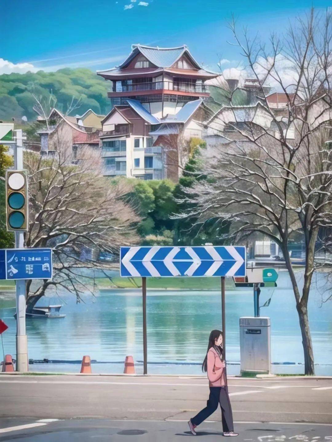 作者运用AI人工智能软件对实景图片进行处理,得到了让人直呼“哇塞”的图片,像极了宫崎骏笔下的世界。