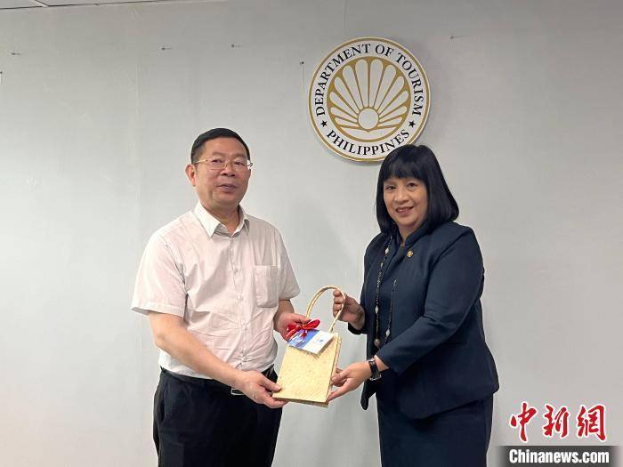 菲律宾国家旅游局第七区(宿务省)负责人JUDY 向欧余军赠送当地文创纪念品。 广西文化和旅游厅 供图