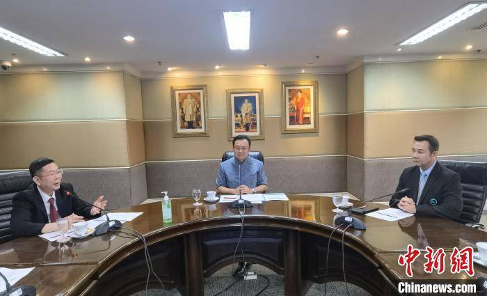 欧余军(左)与泰国国家旅游局局长育塔萨·素帕(中)、东亚司司长李文华(右)会谈。 广西文化和旅游厅 供图