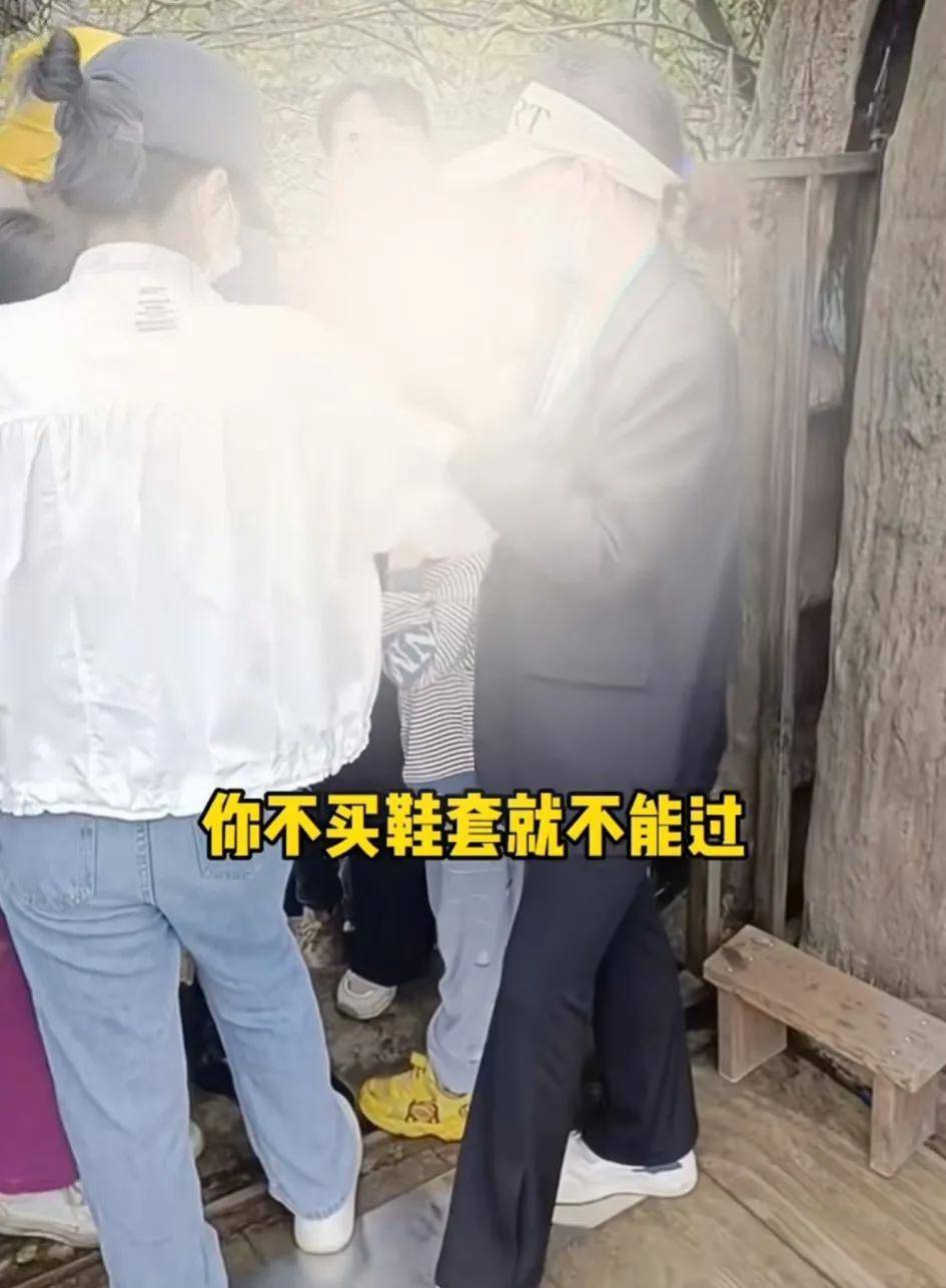 游客称:走到玻璃栈道那块的话,要求我们10元一双买租鞋套走过玻璃栈道。如果不走的话,就要往回走。而往回走呢,天梯又不能下去,不买鞋套就不能过。自己带的鞋套也不行,就必须买他的鞋套。