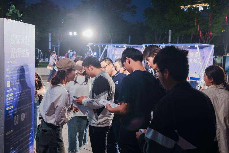 本次活动由安徽天柱山旅游发展有限公司、合肥大学城特色街区综合管理办共同举办,现场打造了“夜爬天柱私语星辰”主题快闪店,通过天柱山景区形象展示、宣讲推介、互动推广等方式,展现了天柱山夜游魅力,吸引了合肥工业大学、安徽大学、安徽医科大学等周边十余所高校学生参与互动。