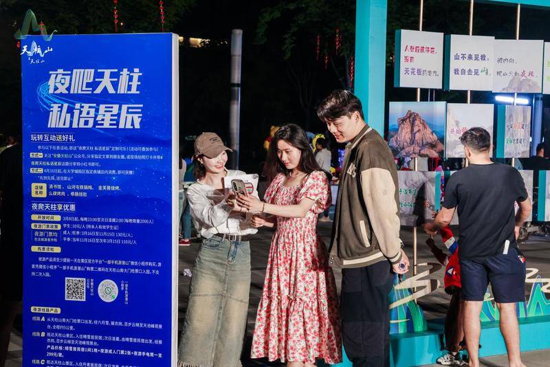 在活动现场的资源展示区,“5公里夜爬”经典路线以及3条“双人夜爬+住宿”个性化定制路线,将天柱山的景点、住宿、服务等以点制线,吸引了众多游客驻足和关注。现场同步推出夜游相关优惠政策,并安排工作人员进行介绍和答疑,获得了现场游客的好评。