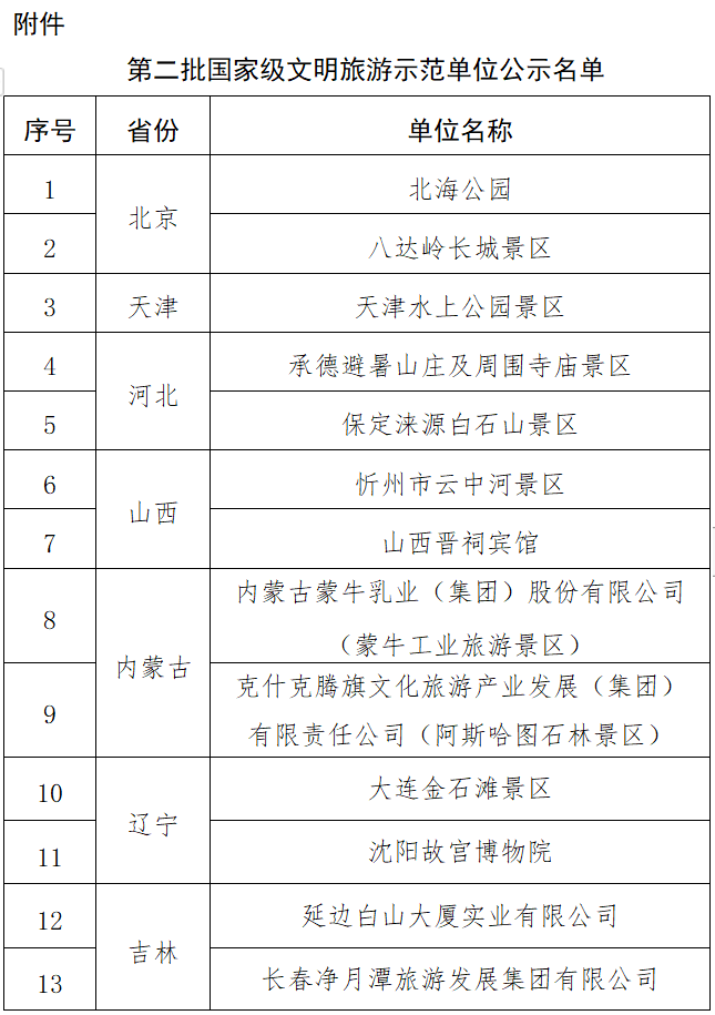 近日,全国旅游标准化技术委员会发布《关于第二批国家级文明旅游示范单位评定结果的公示》,拟认定66家单位为第二批国家级文明旅游示范单位。其中,河北避暑山庄及周围寺庙景区和保定涞源白石山景区入选。