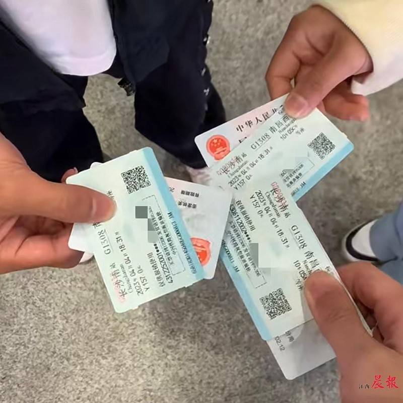 ▲南昌凭借“流量密码”快速火出圈后,越来越多的省内外游客纷至沓来,成为南昌的“粉丝”。图为几名来自长沙的年轻游客晒出自己的火车票。