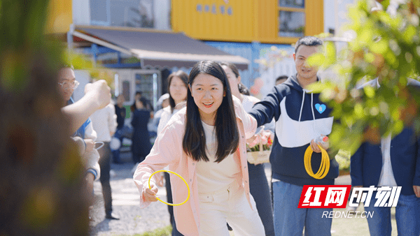 嘉宾们正在进行“魔力圈圈”小游戏。