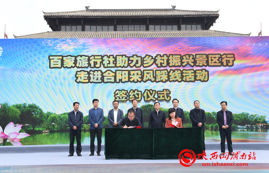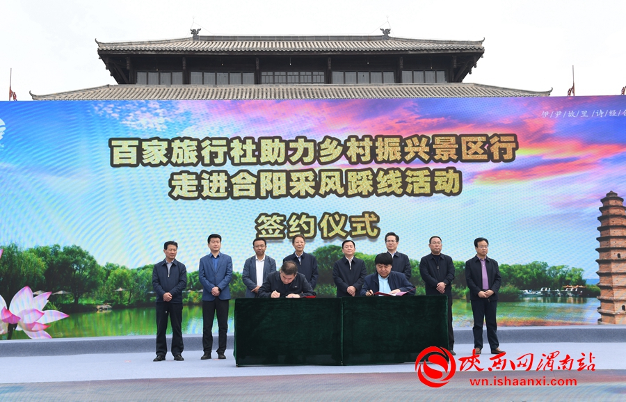 陕西省旅游协会秘书长王新宇与合阳县人民政府副县长井赵斌签订战略合作协议。记者 杨青山 摄