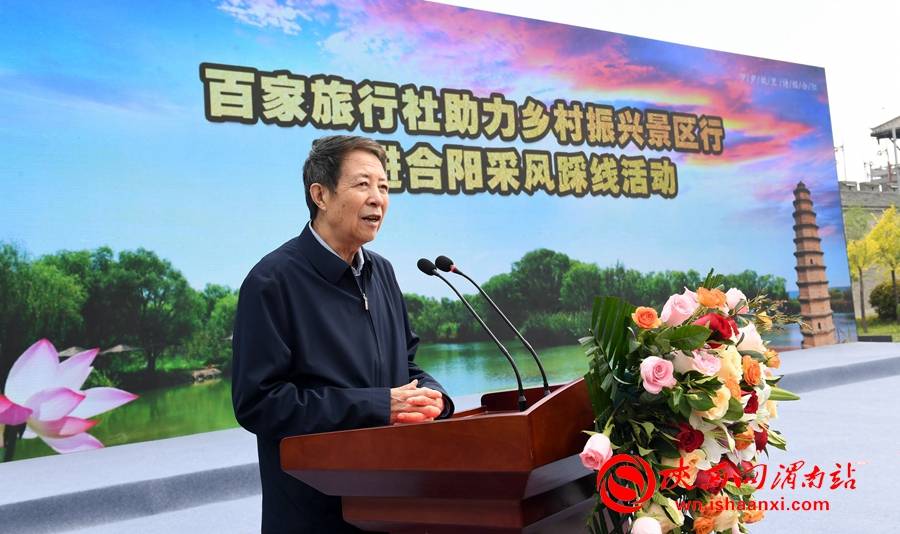 陕西省旅游协会会长辛建伟介绍百家旅行社助力乡村振兴景区行,走进合阳采风踩线活动情况。记者 杨青山 摄