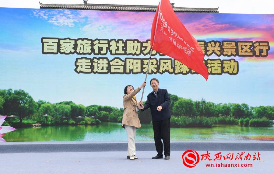 陕西省旅游协会会长辛建伟对采风团进行授旗。记者 杨青山 摄
