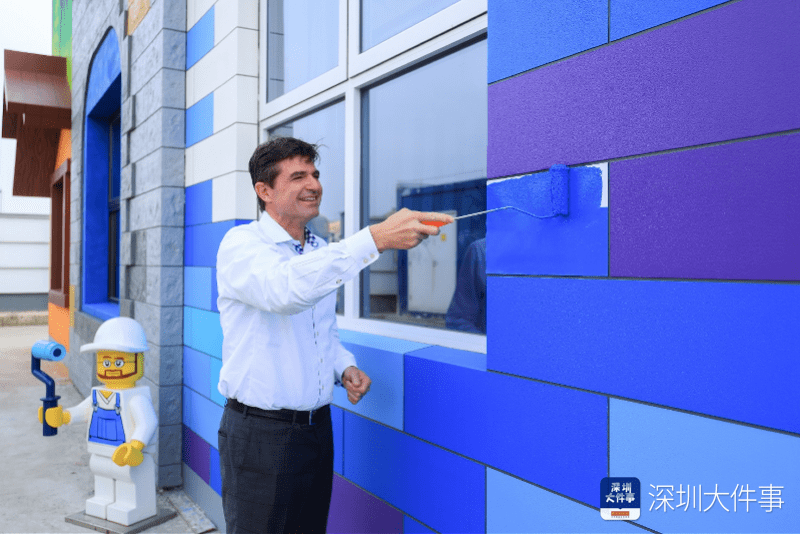 在深圳乐高乐园®度假区的施工现场,度假区的建设工程在有序推进,三大主题酒店的建筑主体即将封顶。此次现场考察,欧思格(Scott M. O'Neil)举起画刷,为酒店样板间添上最后一道色彩,以此宣告酒店样板间完工。这座全新落成的酒店样板间,浓缩和诠释了深圳乐高乐园®度假区内三家主题酒店的独特风格,包括位于主题乐园入口侧的乐高乐园®主题酒店、毗邻水上乐园的城堡主题酒店、以及独具热带风情的探险主题酒店。