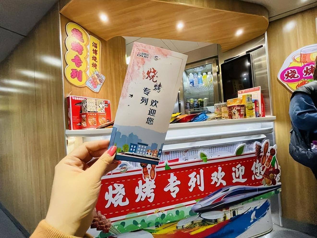 专车上有许多淄博的烧烤装潢,有特别的烧烤小册子,之前也派发过小礼品。