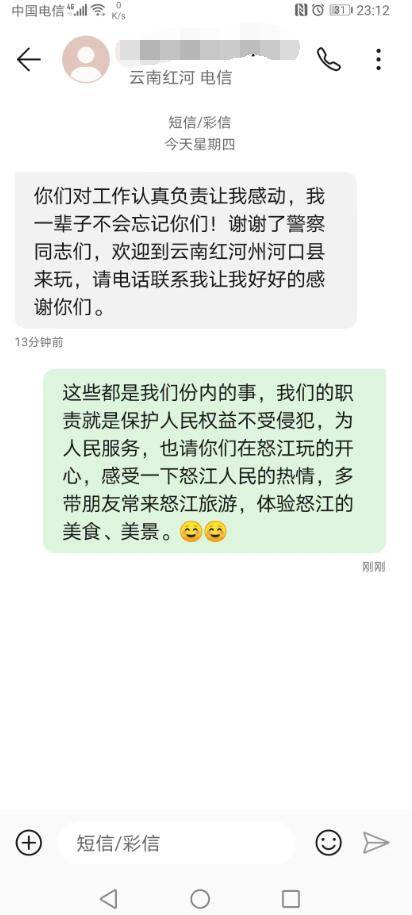 民警核对信息确认无误后,将钱包交还给主人。曾先生拿到失而复得的挎包,握住民警的手连声感谢,对称杆边境派出所民警办事效率高、认真负责、全心全意为人民服务的工作作风予以了高度赞扬。