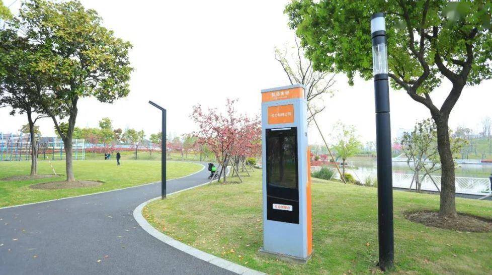 园内有不少科创特色,如路面采用透水铺装,随处可见的雨水花园。园内的智慧步道系统了,它利用“互联网+体育”方式,为市民健身锻炼提供新项目新服务。