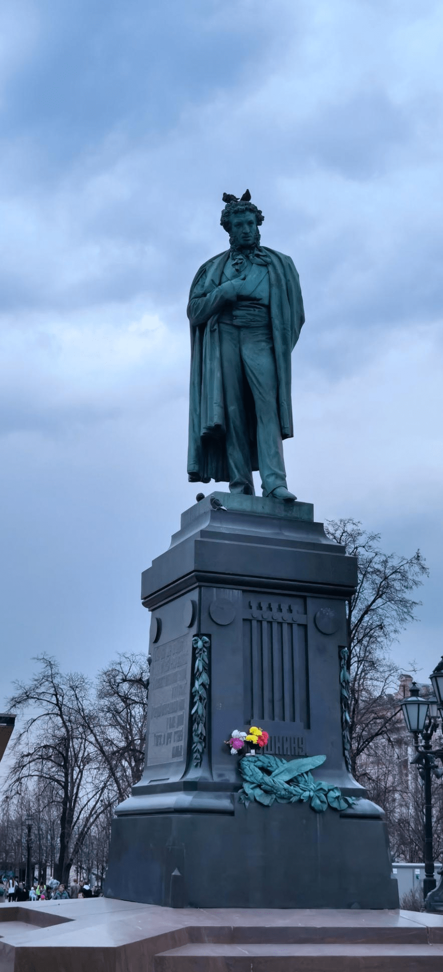 在莫斯科,有不少地铁站是以著名诗人和文学家的名字命名的,而地铁出口外,往往也有同名的广场。从地铁普希金站、契诃夫站和特维尔站出来,很快就能来到普希金广场。广场上有一座普希金的青铜雕像,侧面镌刻有普希金的诗句,雕像后有一座巨大的喷泉和许多花坛,尽头是莫斯科音乐厅。广场上经常举办集市和露天音乐会等城市活动,莫斯科人常会在这里休闲。