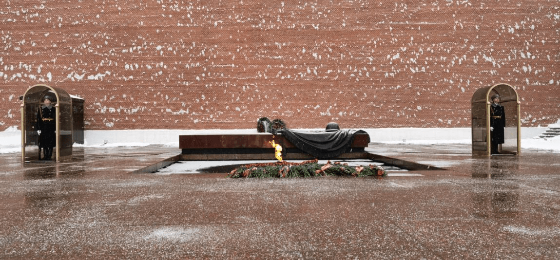 紧邻克里姆林西北宫墙处的苏联卫国战争无名烈士墓(记者王新俊 摄)