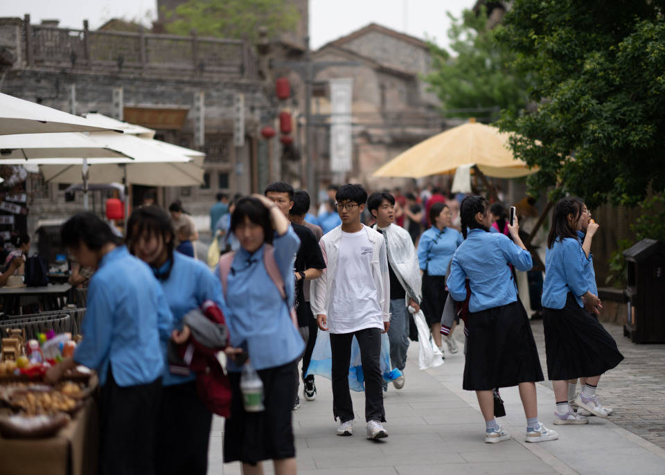 学校组织学生们来电影小镇参加旗袍节活动,女同学穿着民国的学生服装,好似一个个意气风发的“五四”青年。