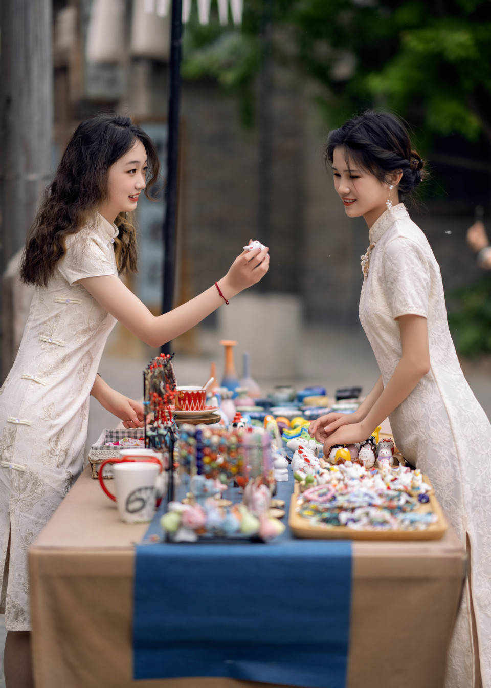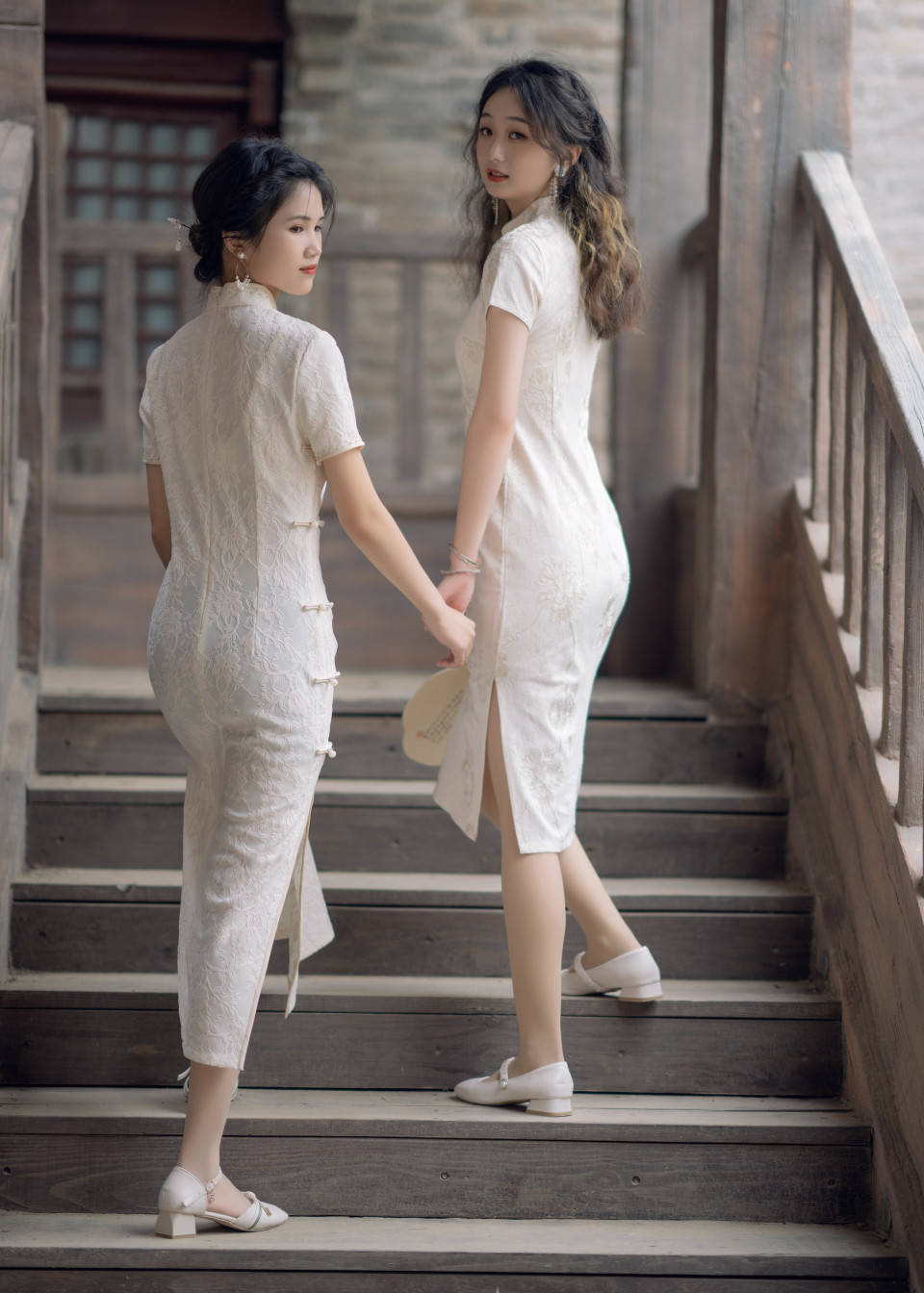 都说女人一生总要穿一次旗袍,穿上旗袍的美女们清丽婉约,身姿妙曼,高贵庄重中不失浪漫,好闺蜜也相约一同穿上旗袍来小镇游玩。