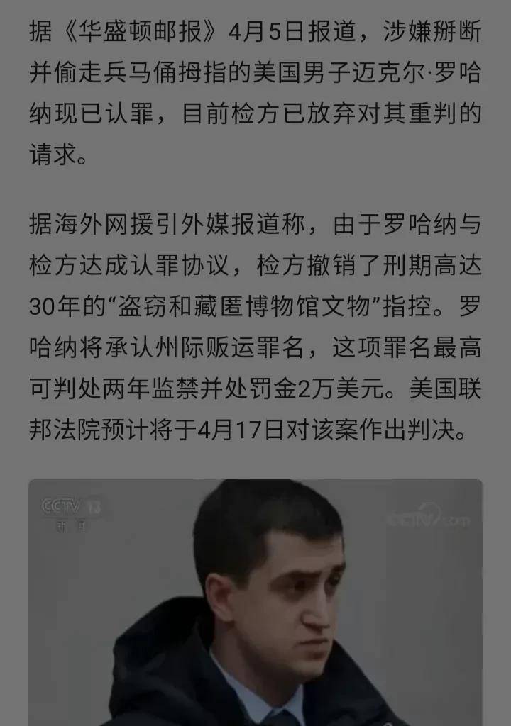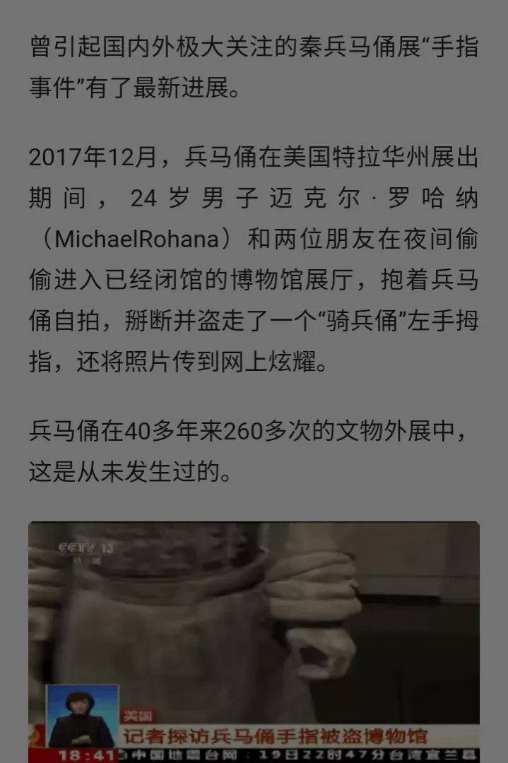 二、事发西安,有网友评论,在西安兵马俑的展馆里,有一个老外偷着掰掉了一个陶勇的手指头,这算不算损害国家文物罪?
