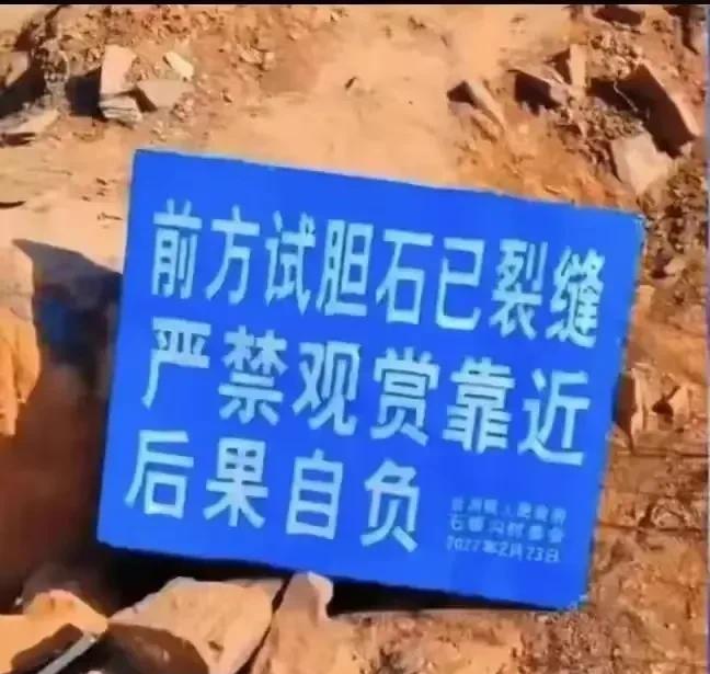 这么好的一处自然景观,破坏了有点可惜,其实可以在下面加固,这个底部直接用水泥或者钢筋加固,周围用围栏围起来,悬挂警惕标识!