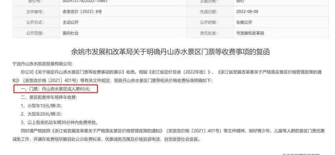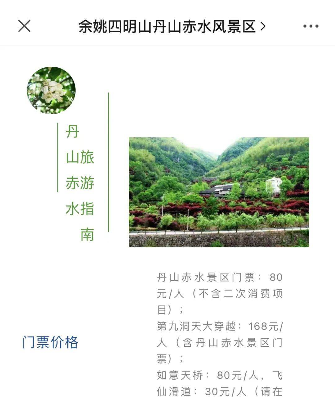 根据2022年余姚发改委的文件显示,丹山赤水景区成人门票收费65元!上文官方收费截图为今日余姚丹山赤水景区的官方微信号链接内容,仍旧停留在2020年的收费标准,这一操作对即将前往的游客也存在一定的误导!