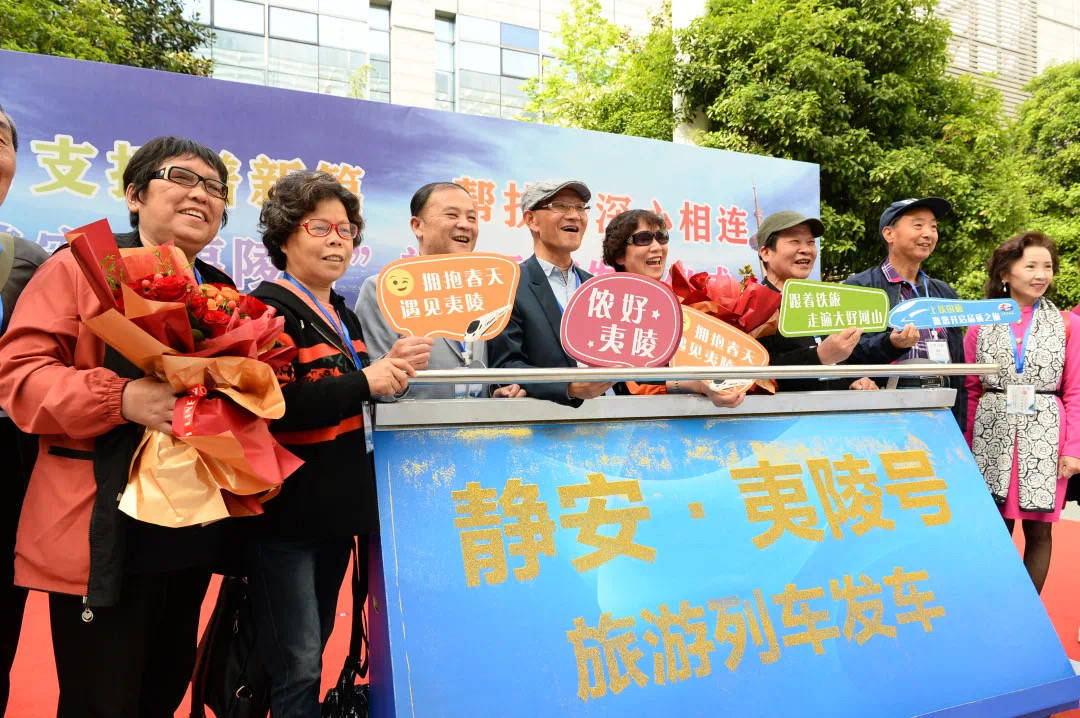 4月17日上午,2023年“静安·夷陵号”旅游专列发车仪式在上海火车站1号站台举行。当天,“静安·夷陵号”旅游专列,满载300余名上海游客从黄浦江出发,前往素有“三峡门户”之称的湖北夷陵,开启为期五天的峡江人文观光之旅。