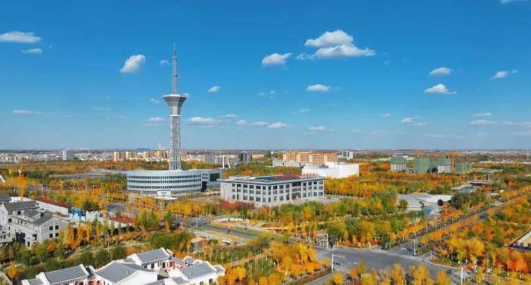 这个新城市就叫做胡杨河市,它是在三年前被建造好的。如果非得要找到它的具体位置的话,可以去看看天山北麓中段,就在这边附近。不得不说,这里的地理位置真的非常的优越,和奎屯市相邻着。