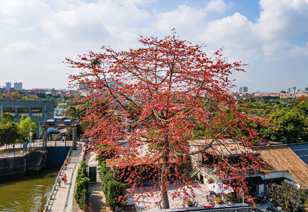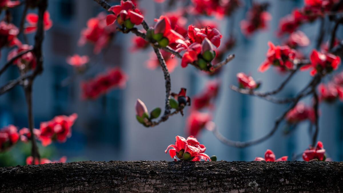 木棉花,是大湾区的一种常见的树木,在春季盛开,它的花朵像火烧云一般红艳夺目,给人以强烈的视觉冲击力。红花独放枝头,是春天的标志性景观。