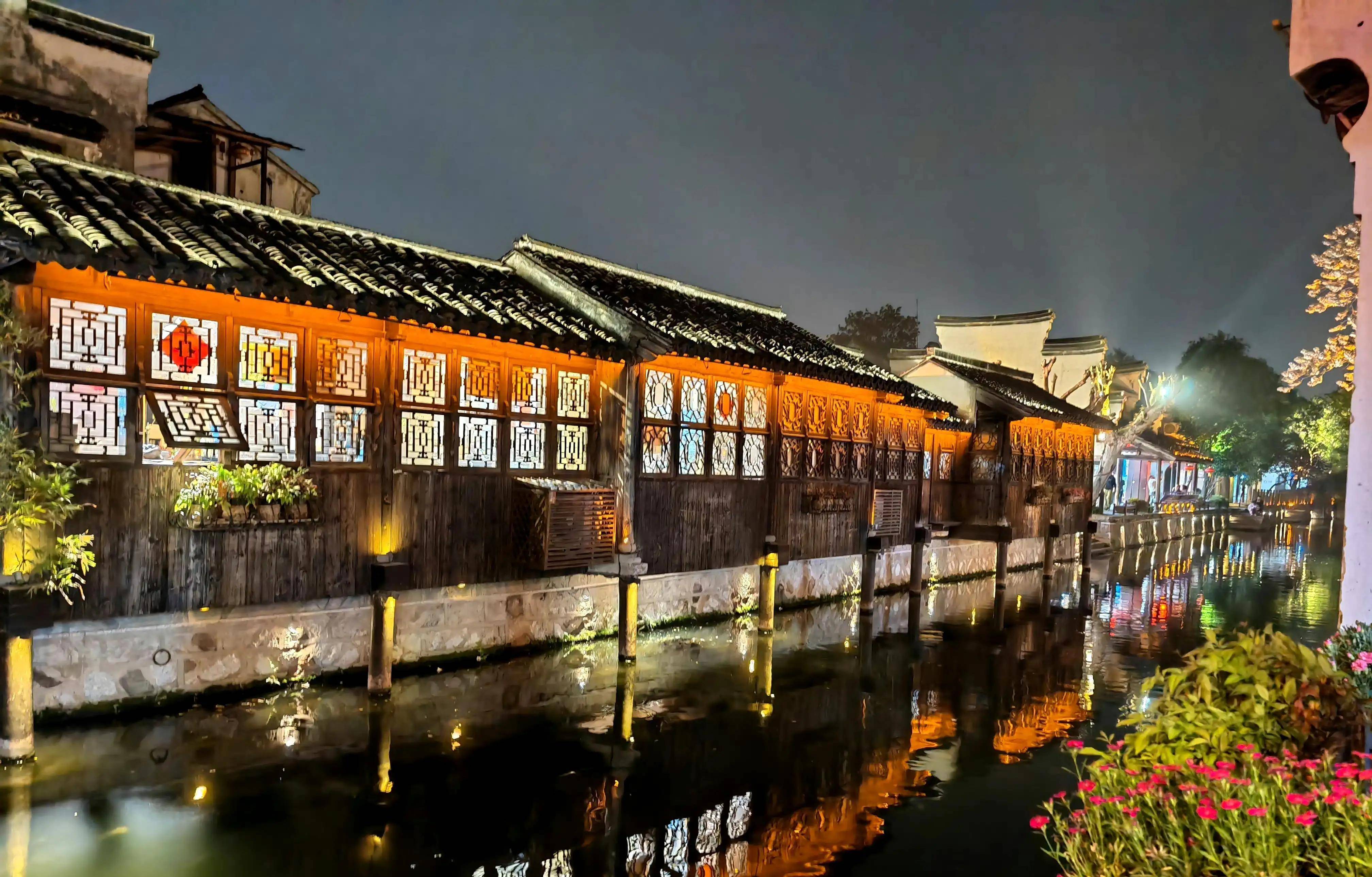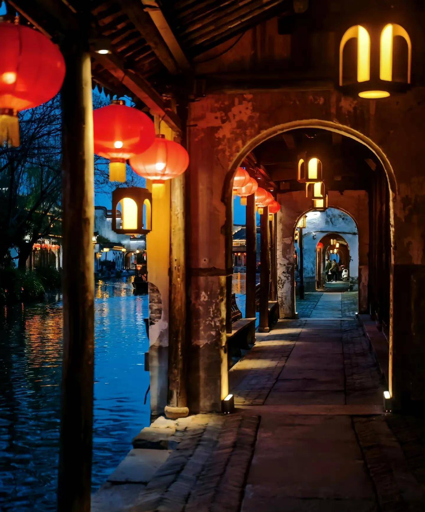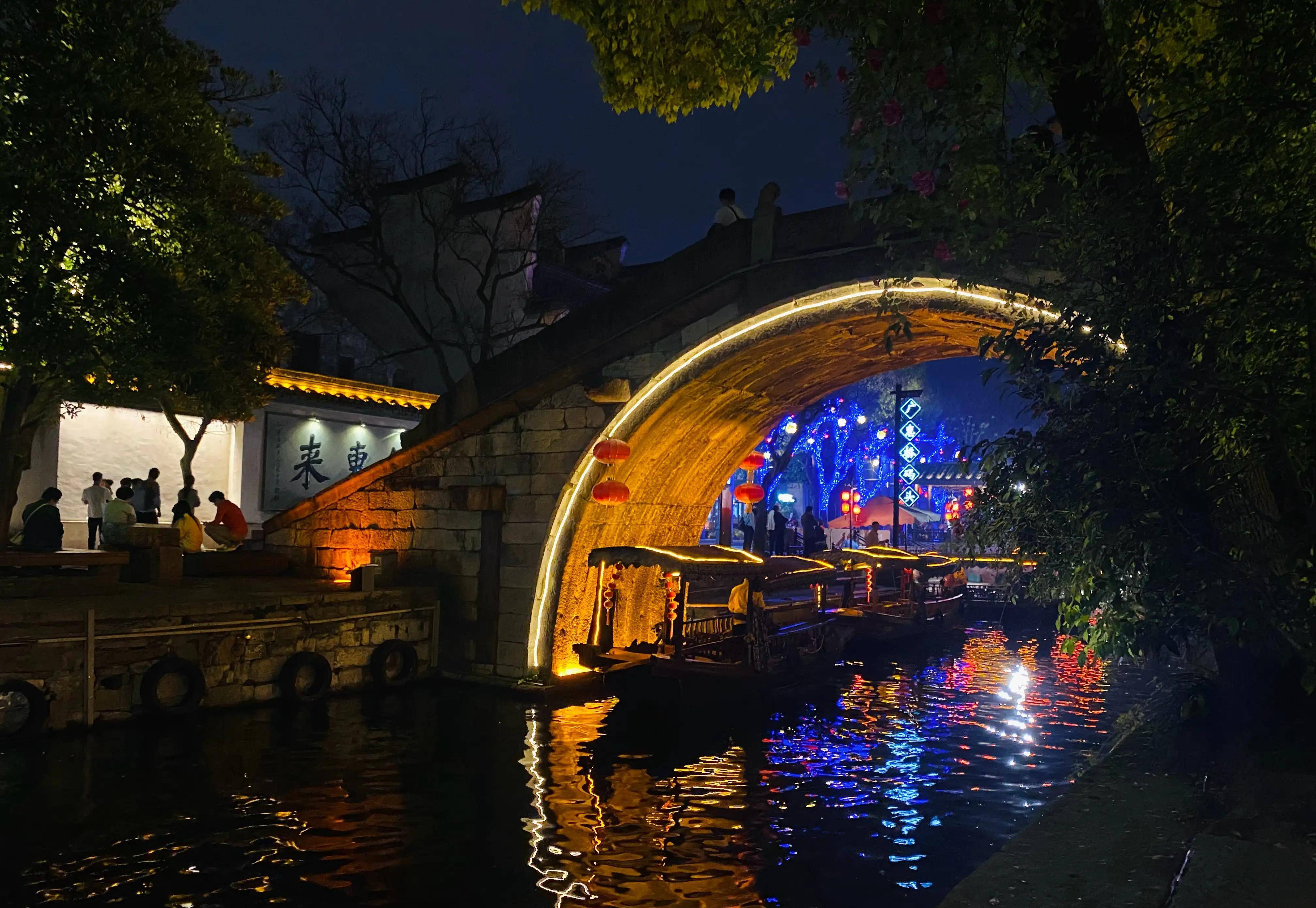 当夜幕降临,南浔古镇又是一派灯火辉煌的气象,五颜六色的灯光将这里的景色完美地揉和在一起,光影交错之间,南塘的夜景的确是太迷人了!