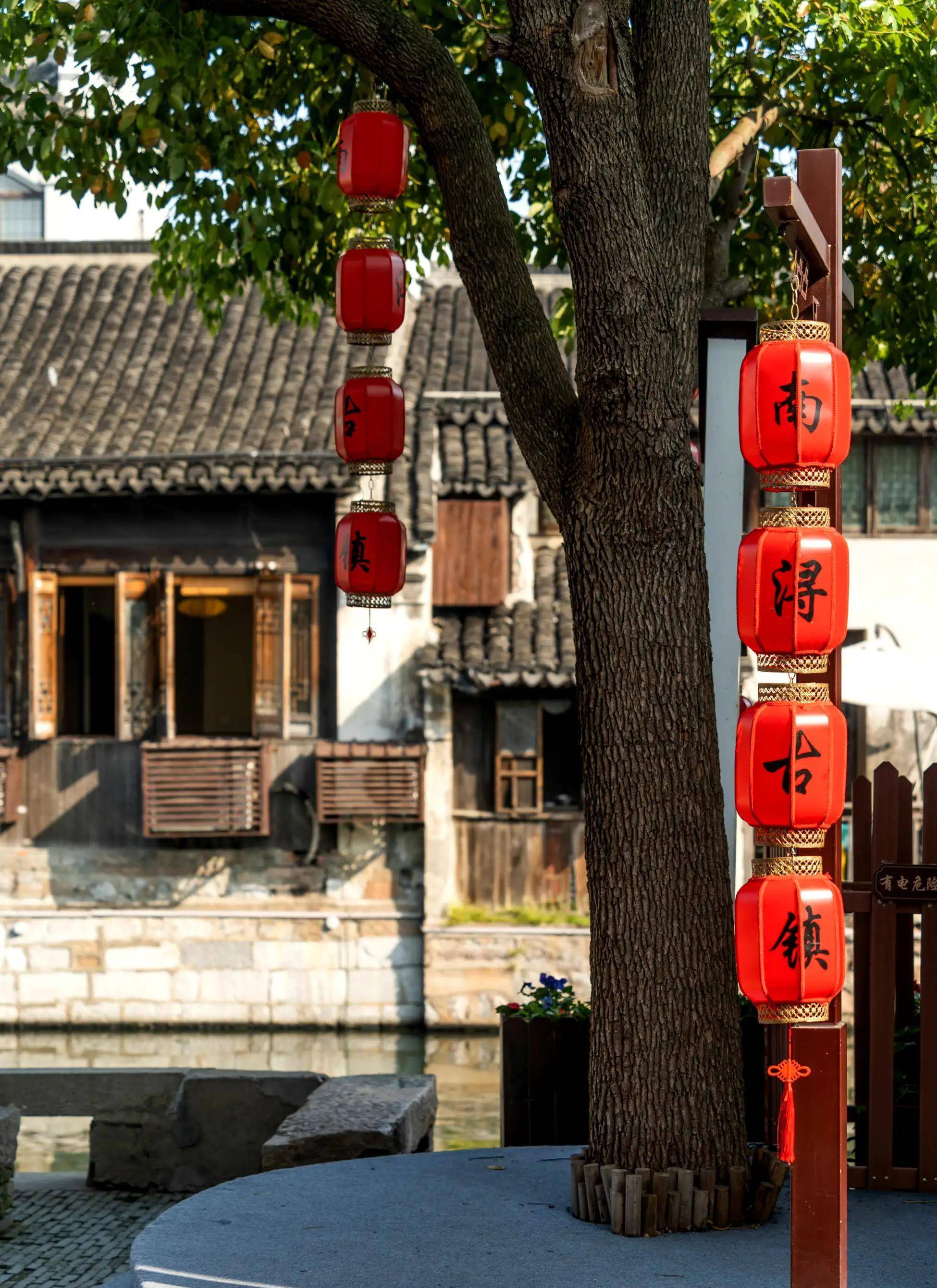 红灯笼上写着“南浔古镇”四个大字,火红的灯笼将这里点缀着,让南浔古镇看起来一派“喜气洋洋”的样子。