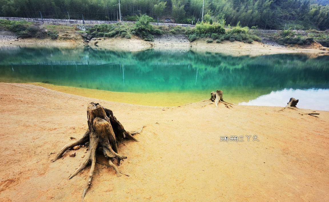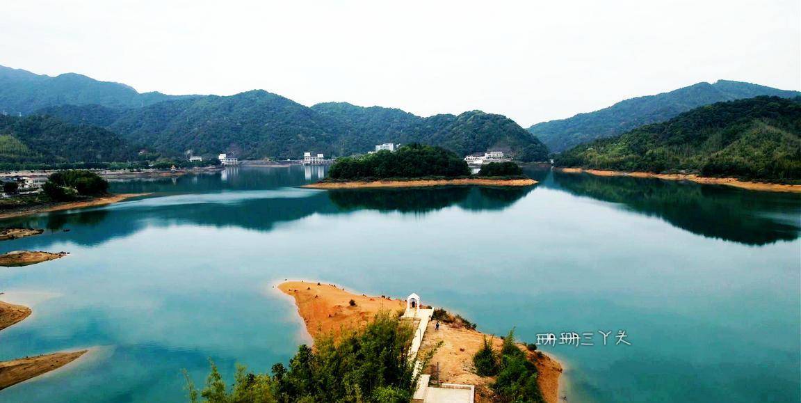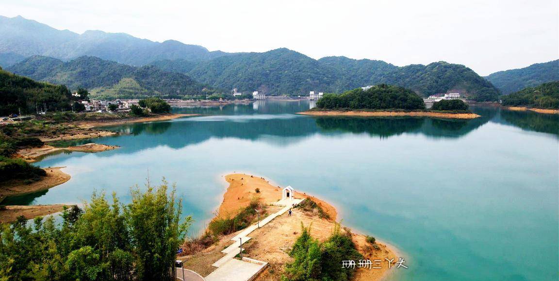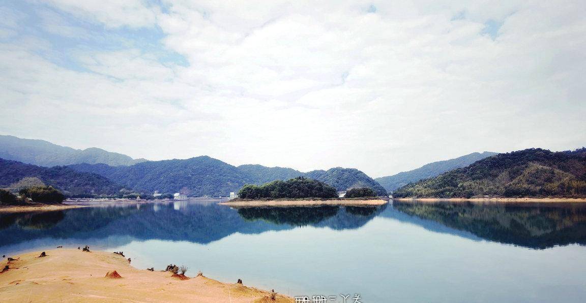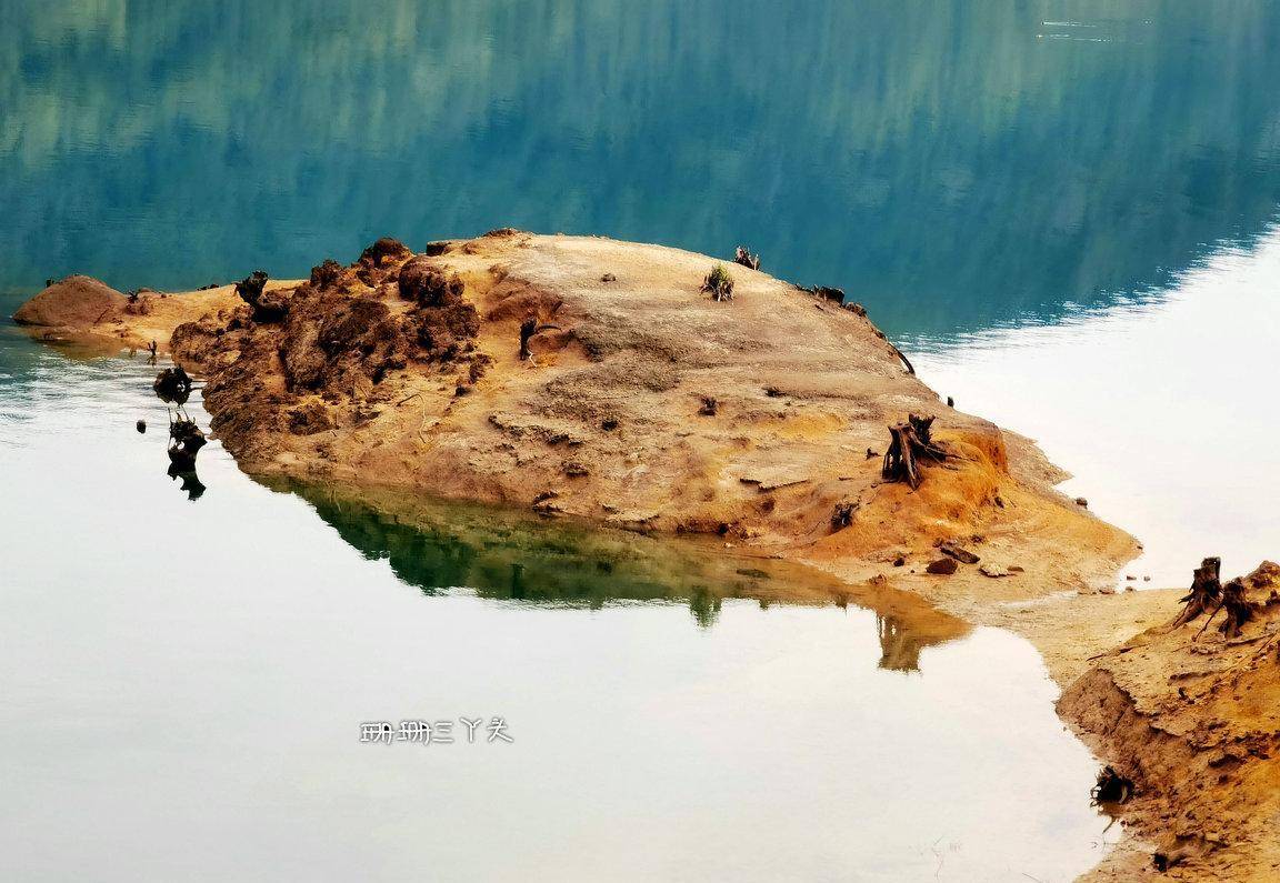 告别村民后,珊珊三丫头沿着水库绿道前行,一边在想,能不能幸运可以看到当年留下的点点旧迹呢?我望向水库的中央,有一座座小岛立在水中,就像千年的灵龟浮出水面。在水库边,建了有一座大大的水上钟塔 ,背景是水库碧蓝碧绿的水,视觉很美,拍照也很美。从钟塔往下走,有一些朽木桩,长在水边,沉在水里,这里是游客可以最接近水库水源的地方。我就在这里,找了个位置,坐着,什么也不做,就在这里静静地发呆,静静地享受着小杉的静谧时光,很惬意。