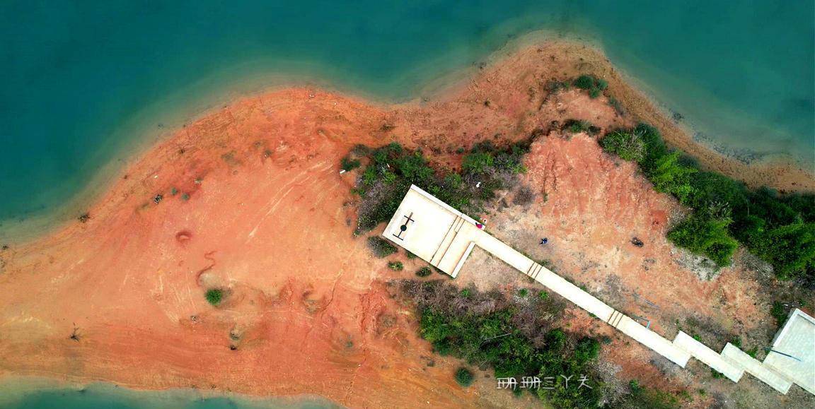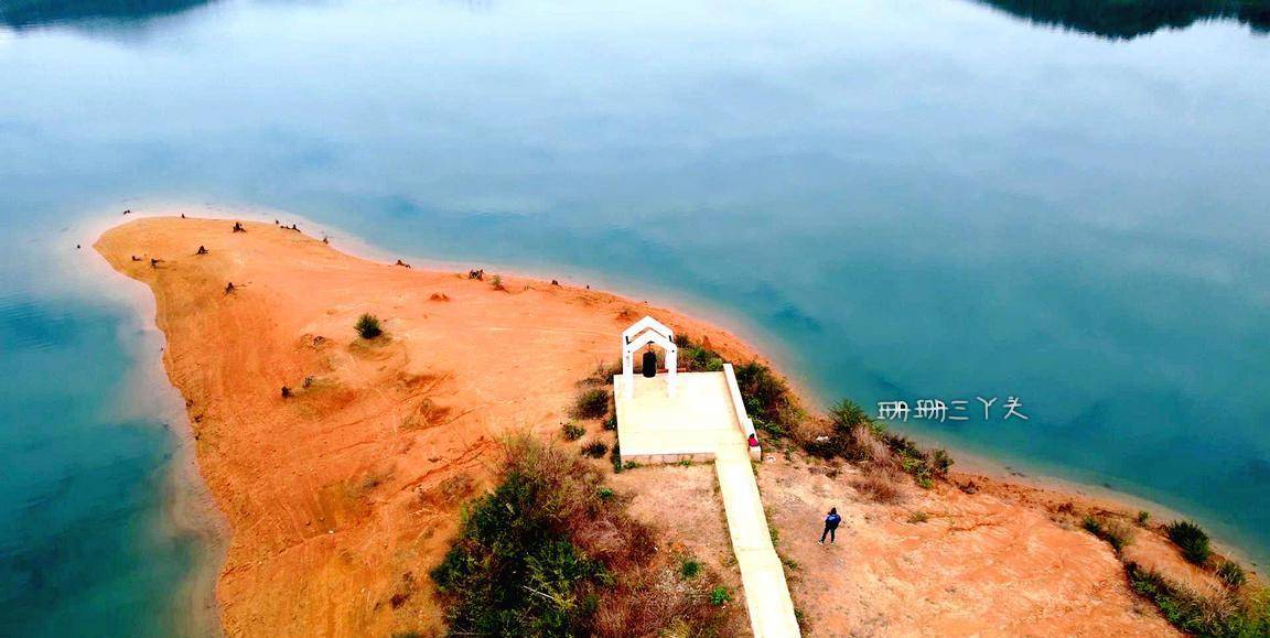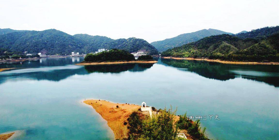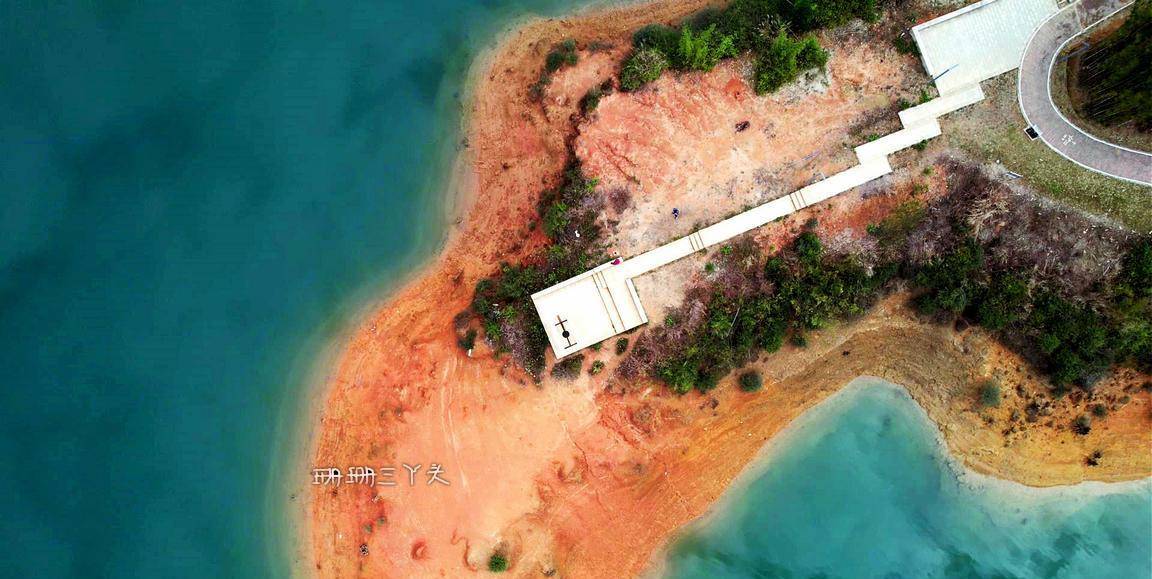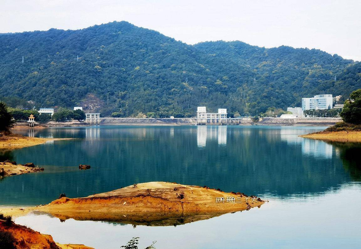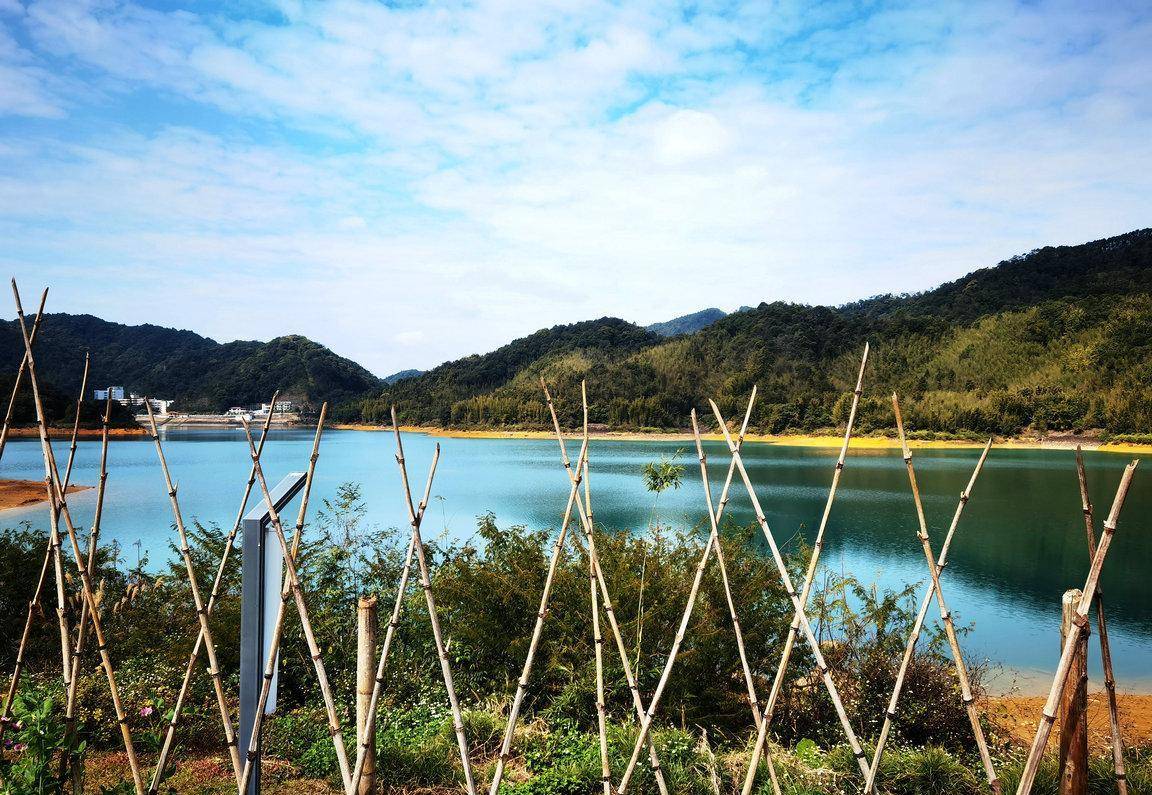 告别村民后,珊珊三丫头沿着水库绿道前行,一边在想,能不能幸运可以看到当年留下的点点旧迹呢?我望向水库的中央,有一座座小岛立在水中,就像千年的灵龟浮出水面。在水库边,建了有一座大大的水上钟塔 ,背景是水库碧蓝碧绿的水,视觉很美,拍照也很美。从钟塔往下走,有一些朽木桩,长在水边,沉在水里,这里是游客可以最接近水库水源的地方。我就在这里,找了个位置,坐着,什么也不做,就在这里静静地发呆,静静地享受着小杉的静谧时光,很惬意。