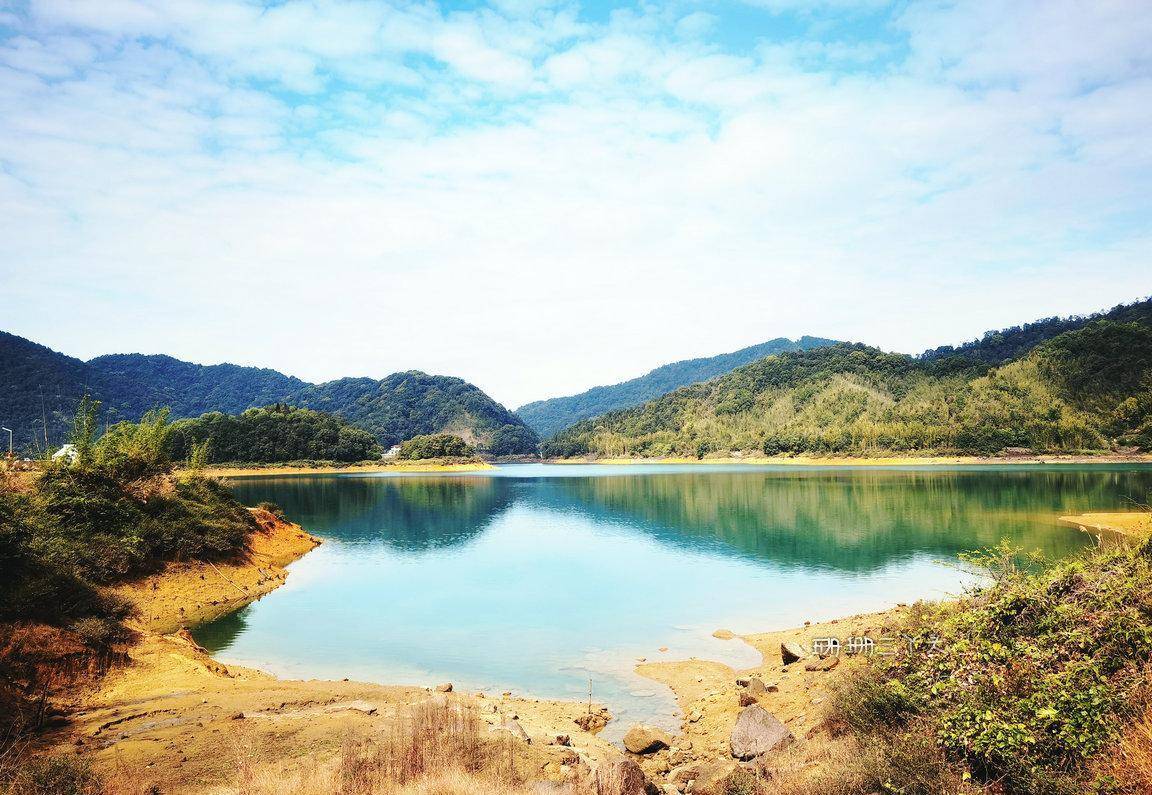 当车开进小杉村的一刻,就见到了被群山环绕的碧蓝色的大水库,珊珊三丫头一下子就被吸引了。停好车后,我和朋友就环水库绿道徒步。小杉村真是宝藏地,恬静秀美,眼前水库中的水,清澈见底,又因为周围被群山环绕,种植有许多的竹子及绿树,映在水上,水面呈现碧绿或碧蓝色,只见水面层层鳞浪,随风而起,伴着我的心,在追逐,在嬉戏。