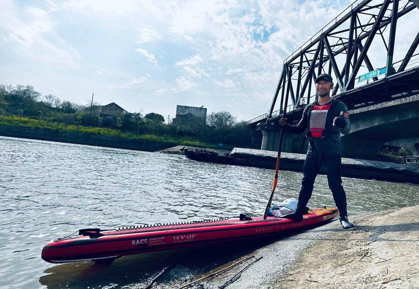 3月29日凌晨3点,宋立伟带上重达100多斤的装备和充气式桨板,从京杭大运河的终点标志——杭州“拱宸桥”附近出发,开始了为期预计3个多月的京杭大运河桨板“趣划之旅”。