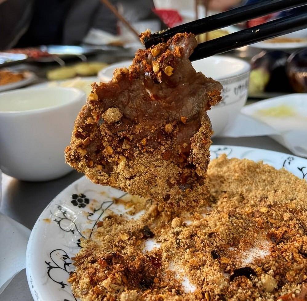 而同样用火盆来烤肉的石棉烧烤和西昌烧烤也有区别,因为石棉烧烤的食材更原汁原味,没有用孜然辣椒面来烘托味道,吃了不辣不咸不腻不渴。切成大片的牛羊肉,浸泡一下秘制的油汤,直接甩到铁网上,在火焰里面翻滚烤制,全靠师傅的几十年手艺,才能唤醒最原始的美味。