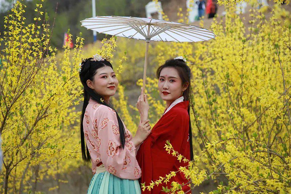 启动仪式现场,万亩连翘金黄漫山,点染勾勒出一幅“遍地金”的乡村田园画卷,麻山头村成了游客打卡地。游人徜徉在花海中,逐花追景,或策马扬鞭恣意宣泄,或置身美景听曲赏舞,或从鞭杆舞豪迈、剽悍的舞风中感悟秦文化的源远流长。据了解,此次文化节为期两天,期间将举办文艺演出、民俗汇演、汉服游园、骑马赏花、网红打卡、写生绘画、摄影展览、农副产品展示展销等活动。