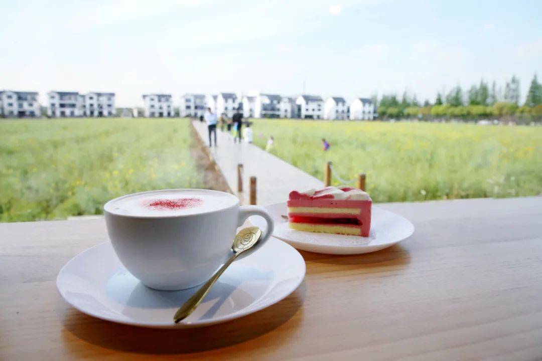 乡野稻田间还有一家咖啡馆,三面全景玻璃,闻着手中咖啡独有的香味,抬头成片稻田青绿或金黄,心旷神怡。