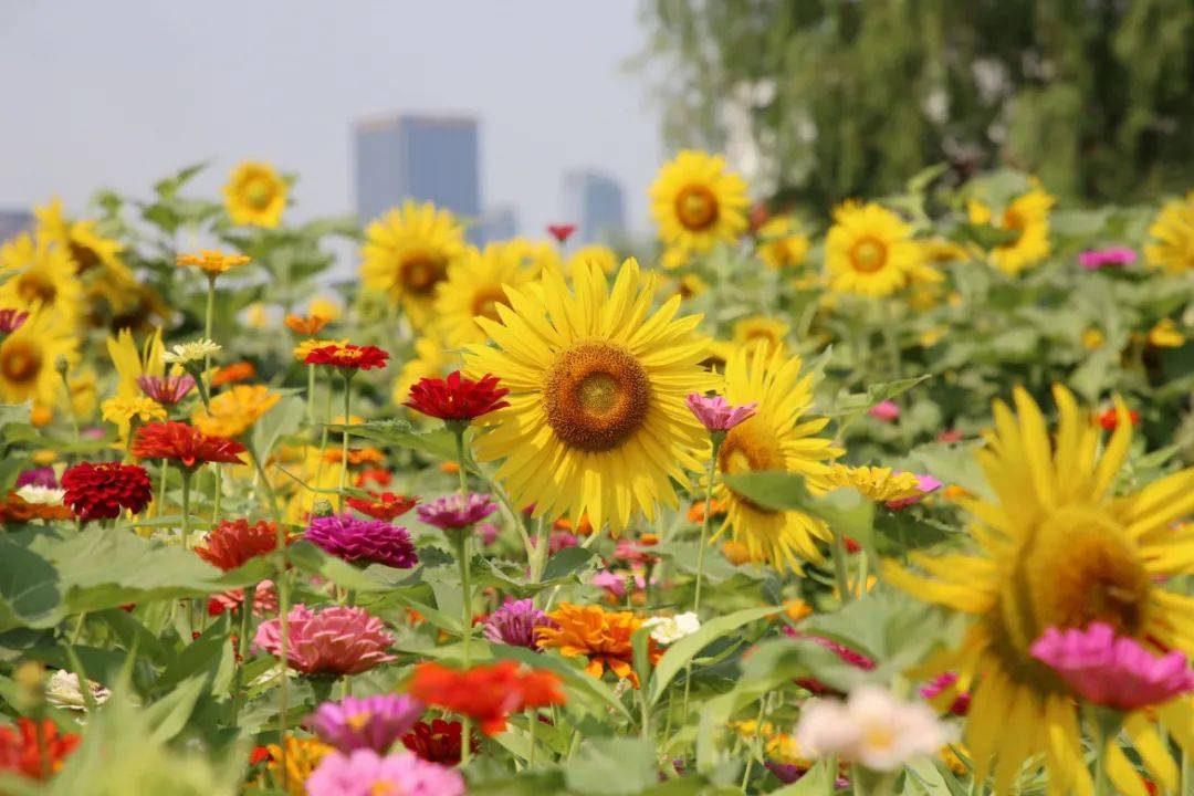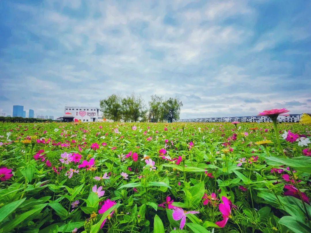 楼前是一片花园,这里会根据季节播种油菜花、波斯菊、向日葵等不同花卉品种,花季可以来此徜徉花海。