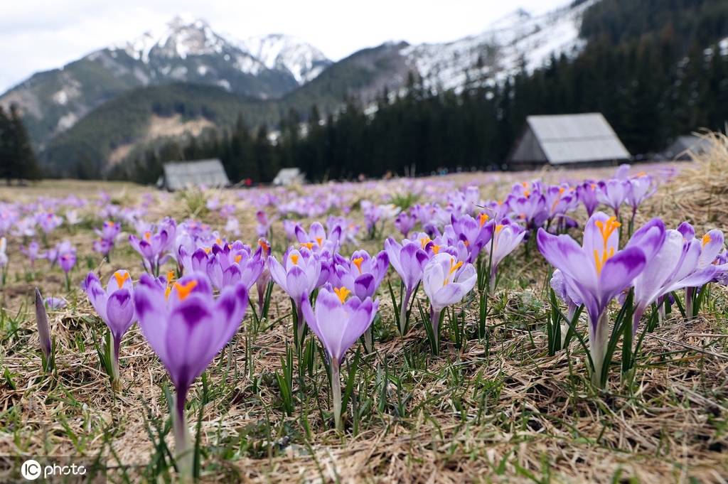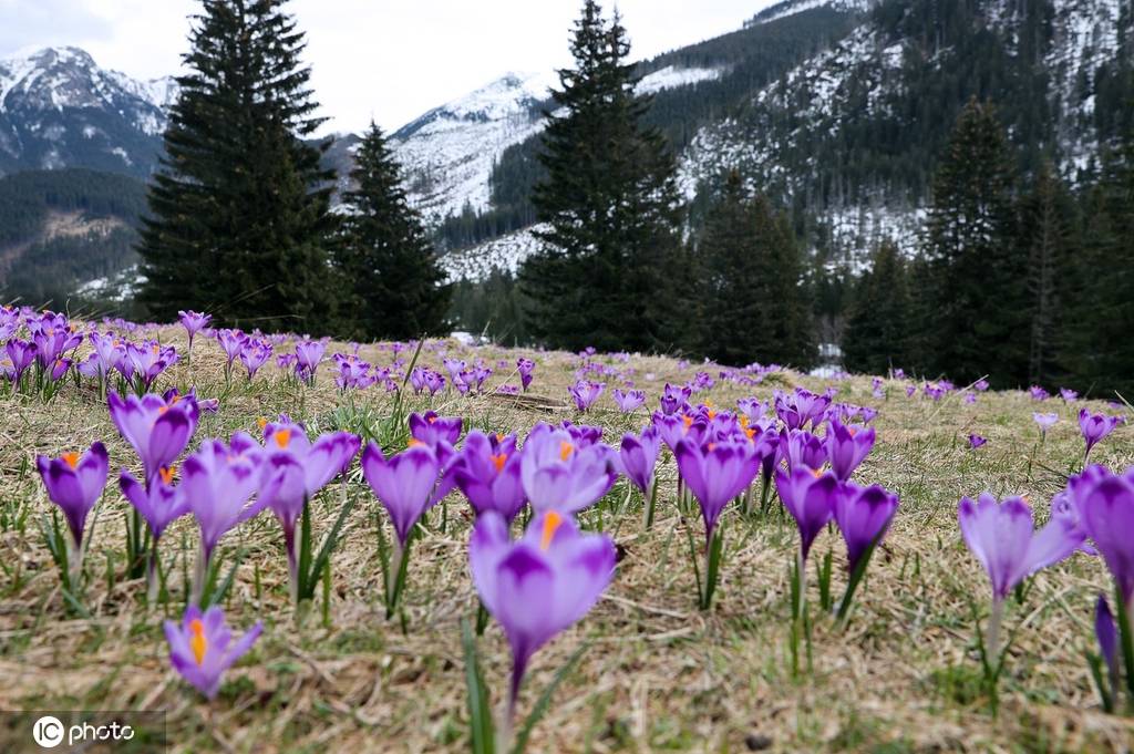 春到波兰塔特拉山,克克罗夫山谷番红花盛开。