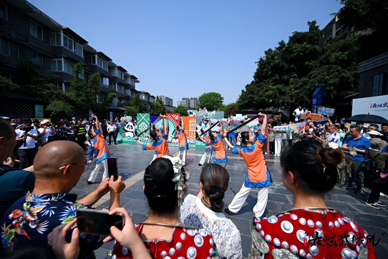 来自重庆武陵的非遗表演《川江号子》、《火锅打击》、原生民歌《太阳出来喜洋洋》、《酉阳欢迎你》、《阿拉调》,民族舞蹈《歹帕银闪闪》唱响成都宽窄巷子,让四川观众身临其境感受重庆民俗文化,感受最炫武陵风。