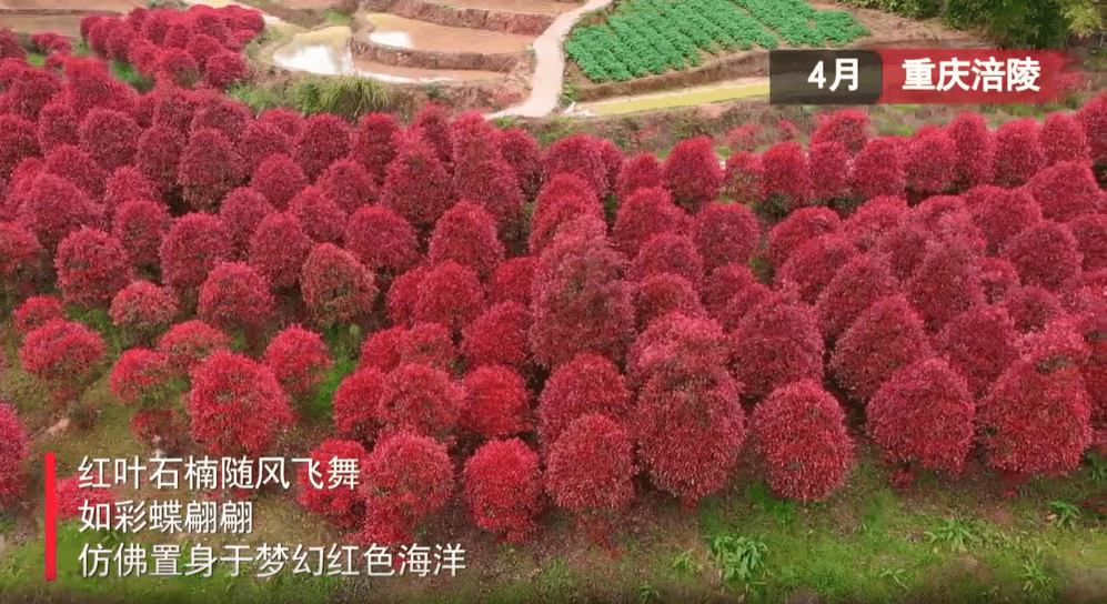 人间最美四月天。这段时间,在重庆市涪陵区,红叶石楠如火如荼,宛如上帝打翻了调色板。