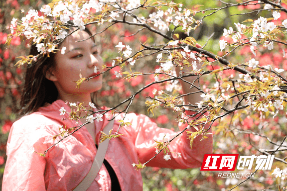 游客登高赏花。
