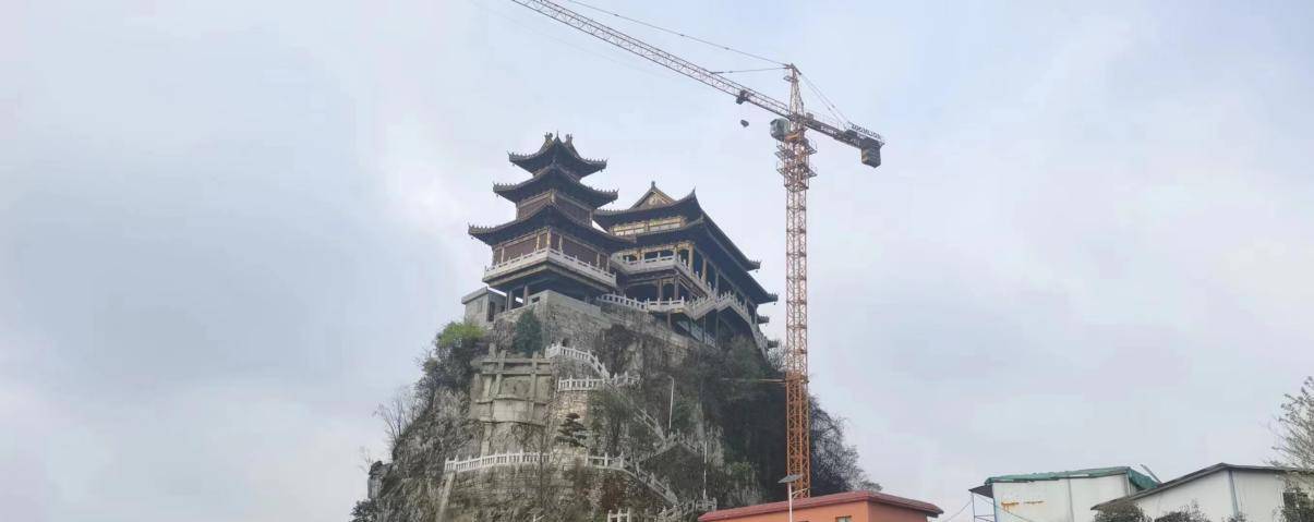 到达了山脚之后,抬头仰望,这湛蓝的天空下,山顶的这一座古建筑飞檐翘角,尽显气宇轩昂的模样!