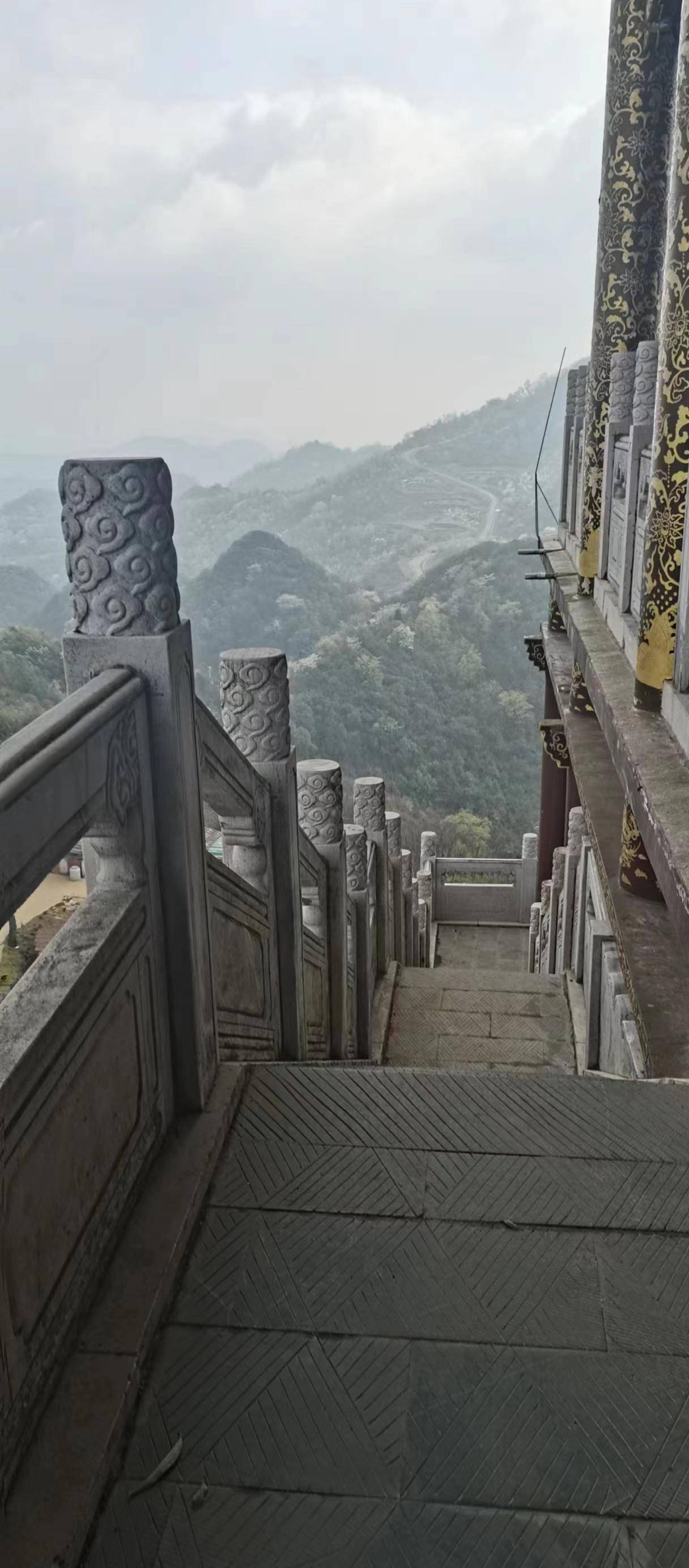 在开始攀登的时候,两旁的扶梯引起了我的注意,每一个石柱上都雕刻有栩栩如生的神兽,有麒麟,有神龟,有趣的是,这神龟背上竟然有一条蛇盘旋,它们相视着,好像在看着彼此微笑!