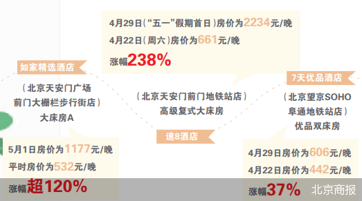 距离“五一”假期还有近两周时间,北京市内不少核心商圈、景区周边的经济型酒店房价已应声上涨,纷纷突破千元。