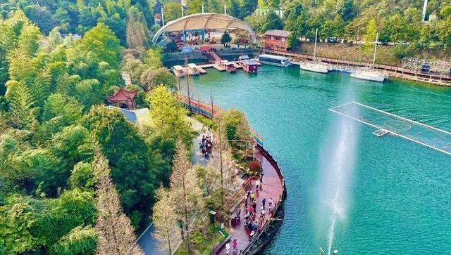 除了庄严雄伟的纪念塔,园内还有景色秀丽、风光旖旎的年嘉湖,以及精美绝伦的湖心岛。年嘉湖湖面辽阔,烟波浩渺,湖上有游船、快艇,一座石拱桥直通湖心岛,成了一道靓丽的风景。岛上的水杉林荫小道,笔直挺立,也成为游人心中的网红打卡地。