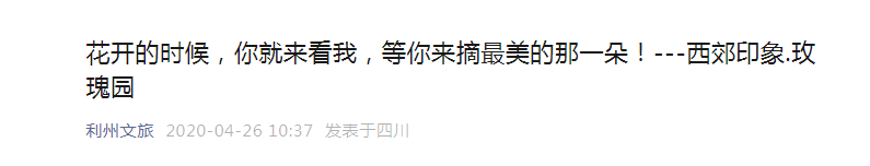 我还是得隆重得推荐一下,这个广元西郊印象玫瑰园,这个地方离广元城确实很近,你可以乘坐6路、13路、19路、27路公交车到凤凰驾校站,步行20分钟;乘坐13路公交车到上西粮库站,步行20分钟。(图据利州发布)