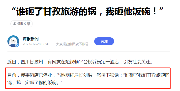 谁砸了我们甘孜旅游的锅,我一定砸了你的饭碗!